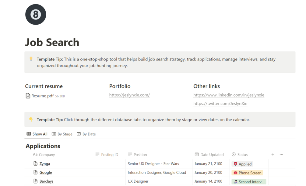 💼 Notion Template: Job Search Toolkit 💻